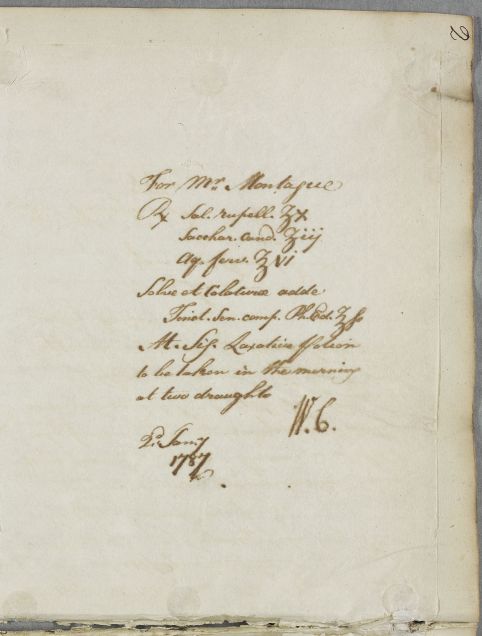 Letter concerning the case of Mr Montague. Addressees dentified in the next letter as 'Messrs. Olive and Hollingsworth' (possible lawyers) 'Mr Montagu who delivers this, has been lately my Patient, and he now returns to be yours when he shall have occasion for advice'.