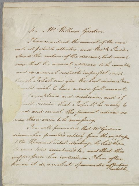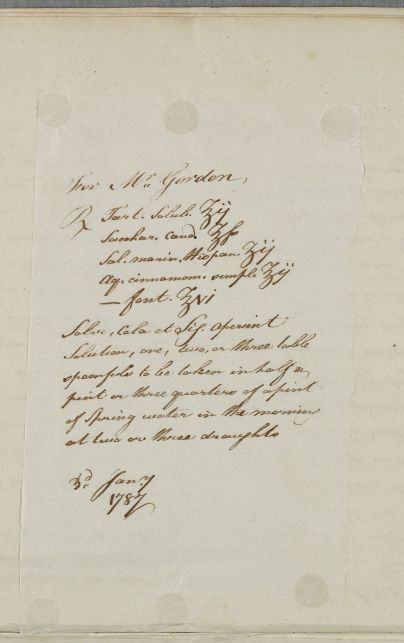 [ID:5384] From: Dr William Cullen (Professor Cullen) / To: Dr / Regarding: Mr William Gordon (Patient) / 3 January 1787 / (Outgoing)
