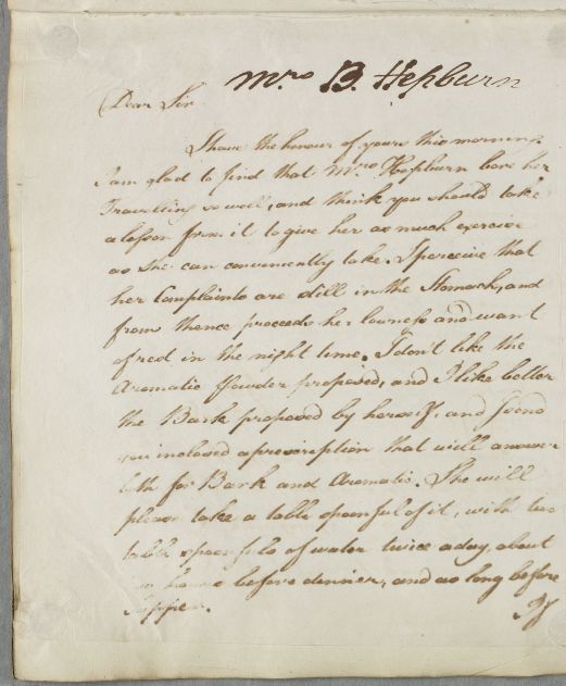 [ID:5386] From: Dr William Cullen (Professor Cullen) / To: Sir George Buchan Hepburn (Buchan) (of Smeaton Hepburn, 1st Bt) / Regarding: Mrs Buchan Hepburn (Patient) / 5 January 1787 / (Outgoing)