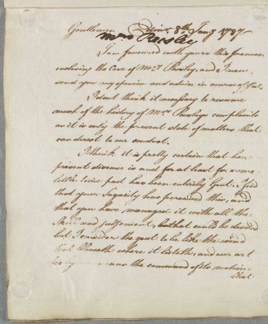 [ID:5387] From: Dr William Cullen (Professor Cullen) / To: Mr William Farquharson / Regarding: Mrs Paisley (Patient) / January? 1787? / (Outgoing)