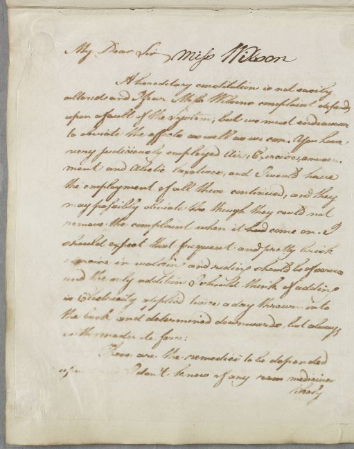 [ID:5395] From: Dr William Cullen (Professor Cullen) / To: Dr William Hamilton (in Glasgow) / Regarding: Miss Wilson (Patient) / 20 January 1787 / (Outgoing)