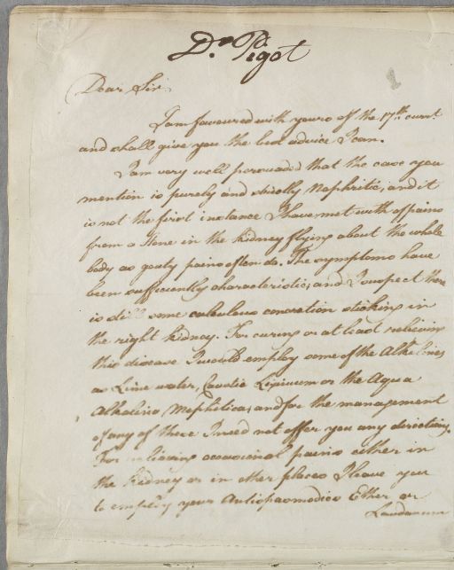 Case of 'Mrs W. S', a young woman who suffers bouts of 'nephritic' pain in her sides, as reported by Dr Pigot. |
