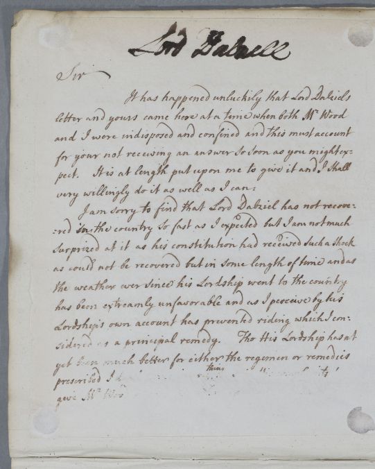 [ID:540] From: Dr William Cullen (Professor Cullen) / To: [ADDRESSEE UNKNOWN] / Regarding: Lord Dalzell (Lord Dalziel Carnwath) (Patient) / May? 1782? / (Outgoing)