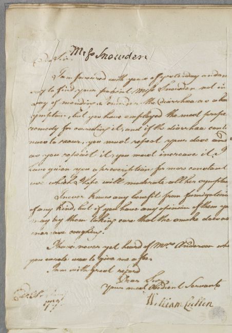 The Consultation Letters of Dr William Cullen (1710-1790) at the Royal College of Physicians of Edinburgh