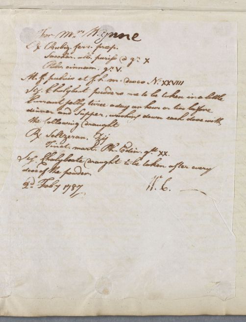 [ID:5406] From: Dr William Cullen (Professor Cullen) / To: [ADDRESSEE UNKNOWN] / Regarding: Mrs Wynn (Wynne) (Patient) / 2 February 1787 / (Outgoing)