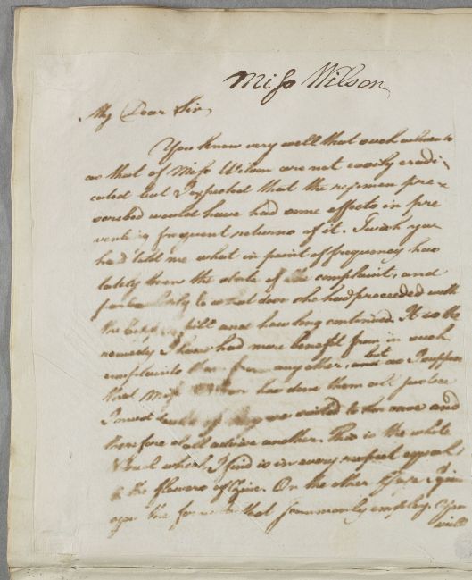 Letter concerning the case of Miss Wilson.
