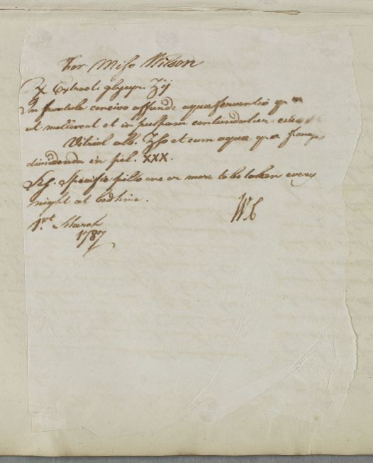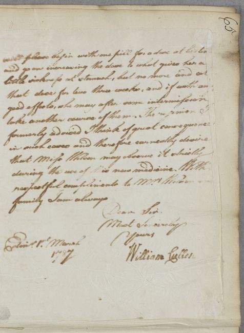 [ID:5417] From: Dr William Cullen (Professor Cullen) / To: Mr William Ingham / Regarding: Miss Wilson (Patient) / 1 March 1787 / (Outgoing)