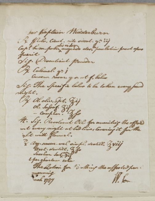 [ID:5419] From: Dr William Cullen (Professor Cullen) / To: [ADDRESSEE UNKNOWN] / Regarding: Captain Charles Wedderburn (Patient) / 12 March 1787 / (Outgoing)