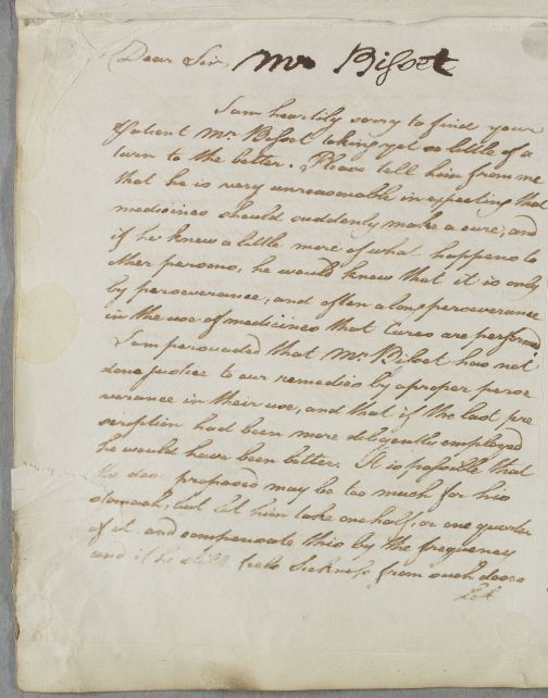 | Summary | Reply [to John White (Whytt)] concerning the case of Mr Bisset. |