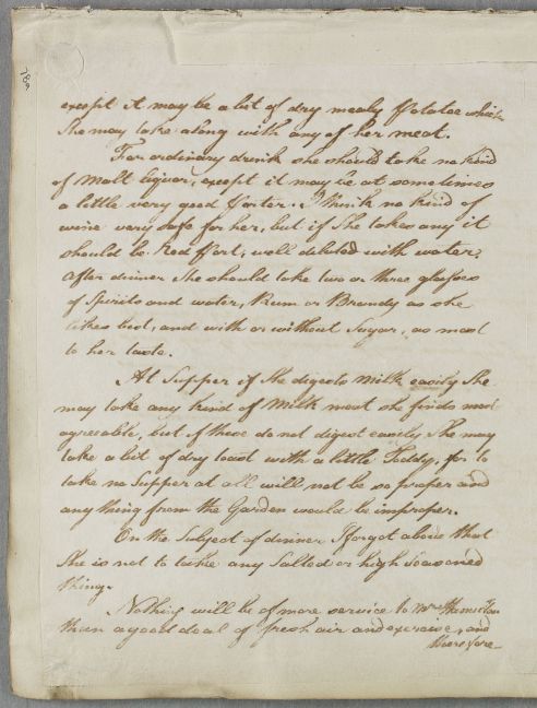 | Summary | Reply, 'For Mrs Hamilton of Wishaw'. To keep Mrs Hamilton's bowels firm, Cullen prescribes a recipe for a strengthening mixture, which is enclosed at the end of this letter. He also advises on diet and exercise. |