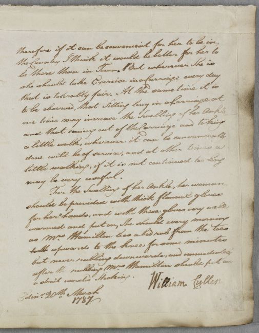 [ID:5425] From: Dr William Cullen (Professor Cullen) / To: Dr / Regarding: Mrs Hamilton (Patient) / 20 March 1787 / (Outgoing)