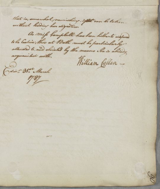 [ID:5430] From: Dr William Cullen (Professor Cullen) / To: Anonymous / Regarding: Miss Jean Campbell (Jane; (after 1797) Mrs MacNeill) (Patient) / 31 March 1787 / (Outgoing)