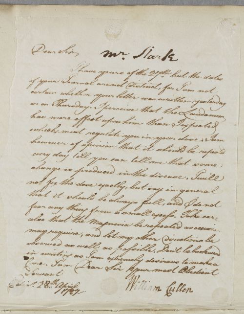 [ID:5447] From: Dr William Cullen (Professor Cullen) / To: Mr Andrew Whyte / Regarding: Mr William Stark (Patient) / 28 April 1787 / (Outgoing)