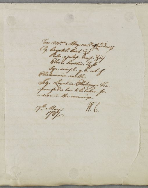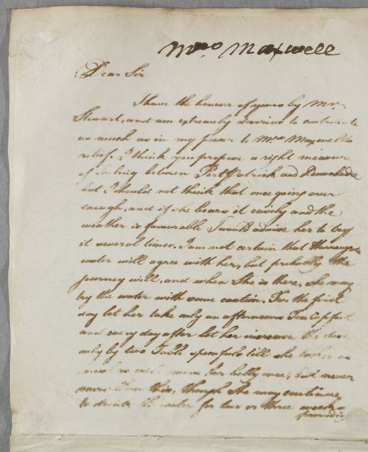 [ID:5458] From: Dr William Cullen (Professor Cullen) / To: Mr David Maxwell / Regarding: Mrs Henrietta Maxwell (Patient) / 17 May 1787 / (Outgoing)