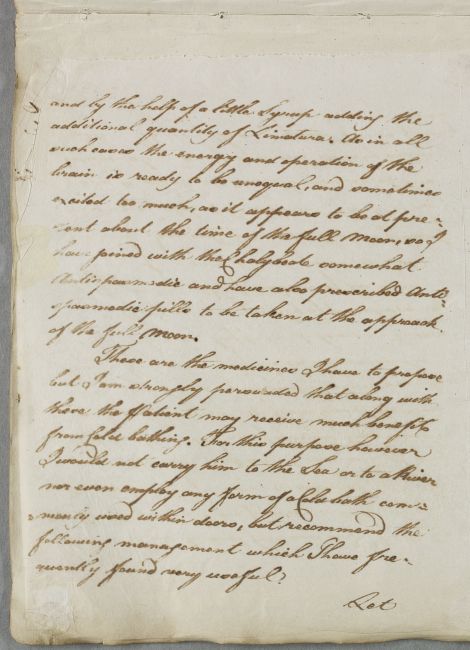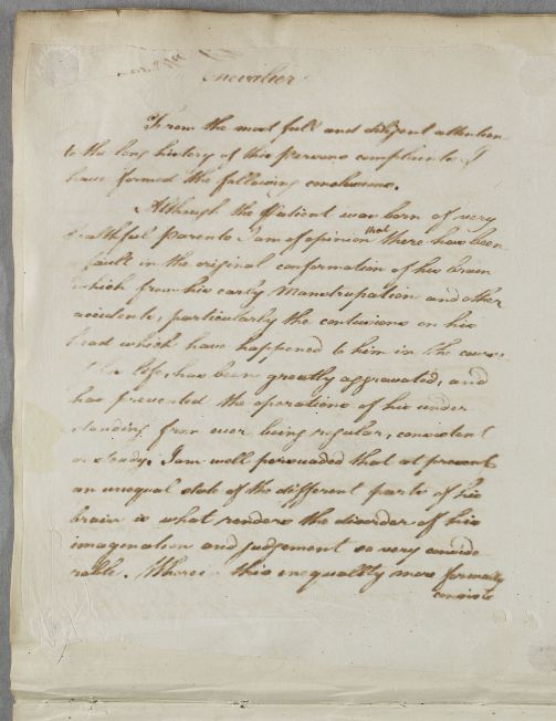 | Summary | Reply headed 'Chevalier' (prescription is titled 'The Chevalier'), a patient suffering from 'disorder of his imagination and judgement'. |