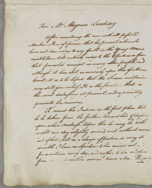 [ID:5463] From: Dr William Cullen (Professor Cullen) / To: [ADDRESSEE UNKNOWN] / Regarding: Mr Magnus Lindsay (Lindesay) (Patient) / 27 May 1787 / (Outgoing)