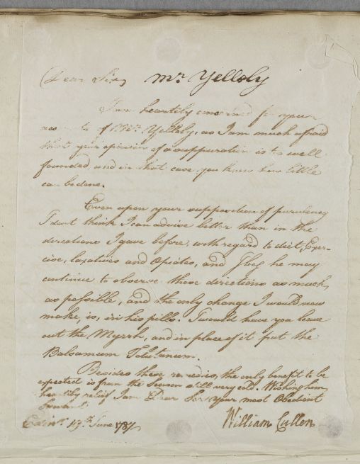 Letter [to Dr Henry Richardson] concerning the case of Mr Yelloly.