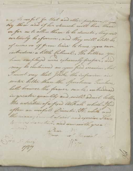 [ID:5477] From: Dr William Cullen (Professor Cullen) / To: Dr John Mudie (Moodie) / Regarding: Miss (Patient) / 2 July 1787 / (Outgoing)