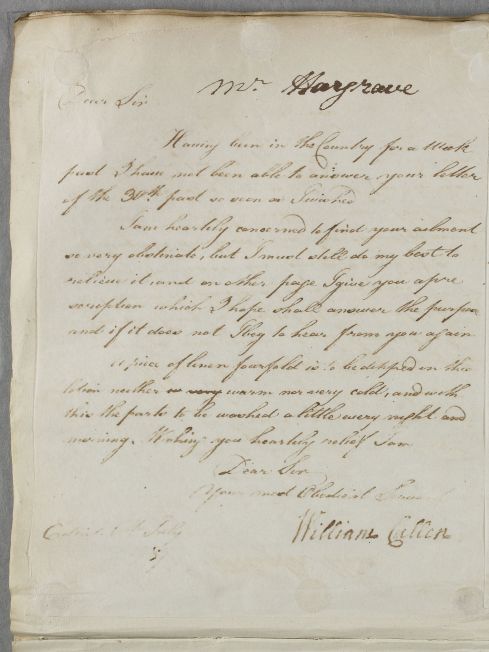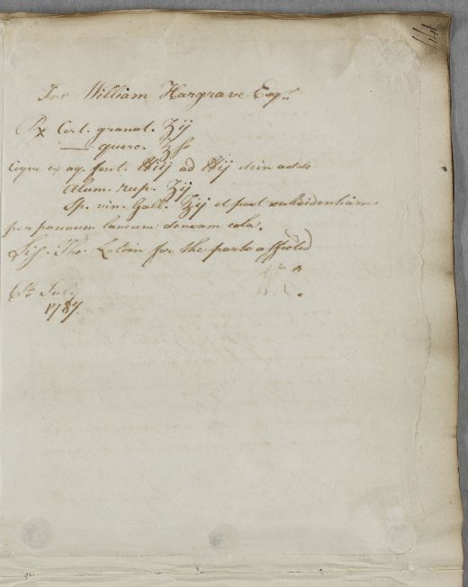 [ID:5478] From: Dr William Cullen (Professor Cullen) / To: Mr William Hargrave (Hardgrove) / Regarding: Mr William Hargrave (Hardgrove) (Patient) / 6 July 1787 / (Outgoing)
