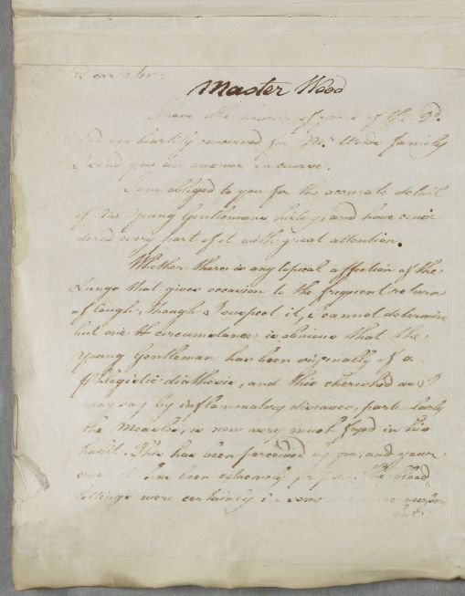 | Summary | Reply concerning the case of Master Wood. Cullen is concerned at the number bleedings being taken. |