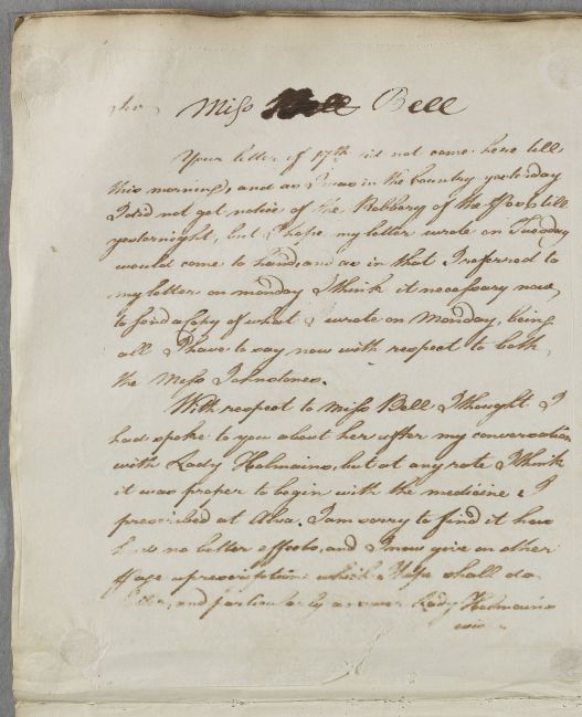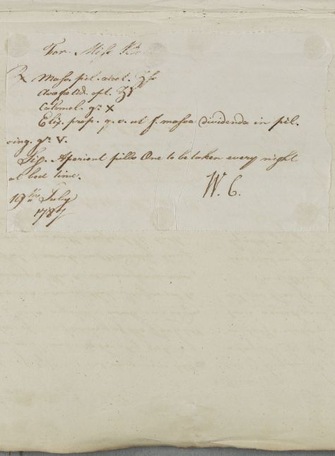 [ID:5491] From: Dr William Cullen (Professor Cullen) / To: Mr George Moncrieff / Regarding: Miss Elizabeth Johnstone (Betty; Mrs Betty; Johnston; of Westerhall) (Patient), Miss Bell (Patient) / 19 July 1787 / (Outgoing)