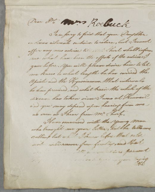 | Summary | Reply [to John Roebuck] concerning the case of Mrs Roebuck, the daughter of the addressee. |