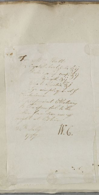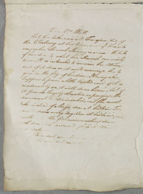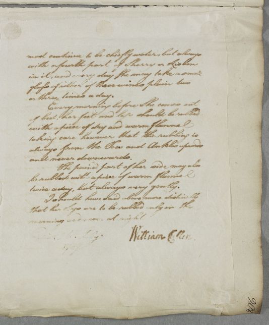| Summary | Reply, 'For Mrs Watt'. Brief advice, probably sent to her relatives the Browns, on diet and rubbing of feet and legs, with recipe for an Electuary. The lower part of the first page is poorly copied. |