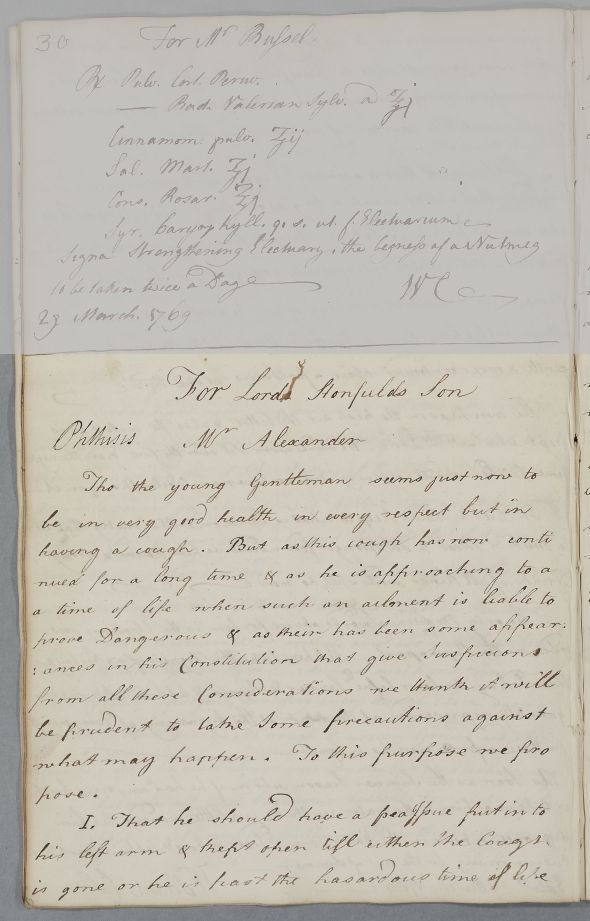 [ID:55] From: Dr William Cullen (Professor Cullen) / To: [ADDRESSEE UNKNOWN] / Regarding: Mr Alexander Campbell (Patient) / 30 March 1769 / (Outgoing)