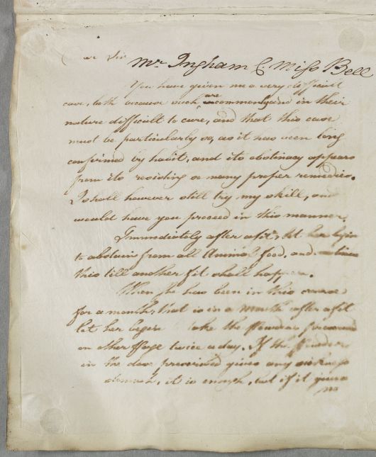[ID:5514] From: Dr William Cullen (Professor Cullen) / To: Mr William Ingham / Regarding: Miss Bell (Patient) / 25 August 1787 / (Outgoing)