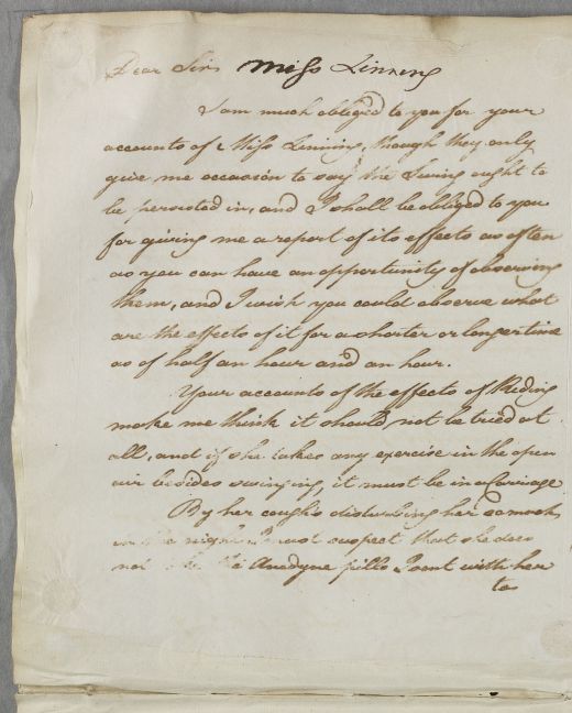 [ID:5518] From: Dr William Cullen (Professor Cullen) / To: Mr James Brown / Regarding: Miss Lining (Patient), Mr Thomas Lining (Tommie) (Patient) / 5 September 1787 / (Outgoing)