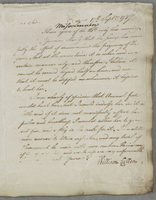 [ID:5528] From: Dr William Cullen (Professor Cullen) / To: Mr James Brown / Regarding: Miss Lining (Patient) / 17 September 1787 / (Outgoing)