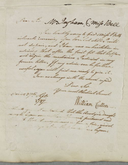 [ID:5537] From: Dr William Cullen (Professor Cullen) / To: Mr William Ingham / Regarding: Miss Bell (Patient) / 27 September 1787 / (Outgoing)