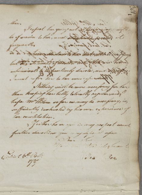 [ID:5546] From: Dr William Cullen (Professor Cullen) / To: Reverend Colin Gillies (of Paisley) / Regarding: Mrs Gillies (Patient) / 6 October 1787 / (Outgoing)