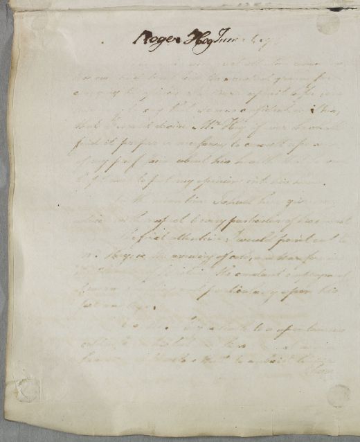 | Summary | Letter concerning the case of Roger Hog Junior.. Extremely poor copy. |
