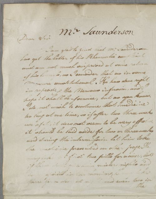 | Summary | Reply concerning the case of Mr Saunderson. Appears to be written to Saunderson's son. |