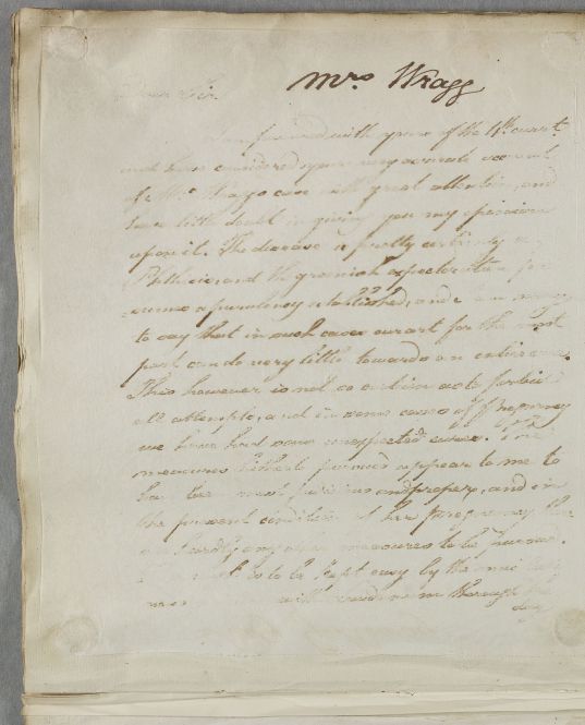 | Summary | Reply [to J. Wilson] concerning the case of Mrs Wragg. |