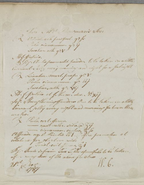 | Summary | Reply concerning the case of Mrs Bowman's son. Inferred that the letter was sent to Alex. Dunlop. The recipe for the ointment that Cullen prescribes for the boy's spine is not included. It is given in another letter the next day - letter 5586. |