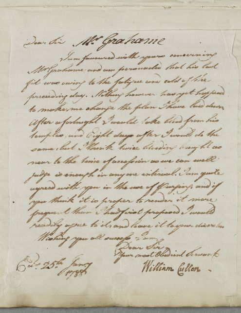[ID:5600] From: Dr William Cullen (Professor Cullen) / To: Mr William Farquharson / Regarding: Mr John Graham (Patient) / 25 January 1788 / (Outgoing)