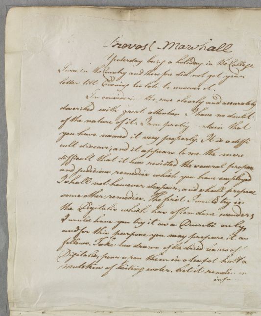 Letter concerning the case of Provost Marshall.