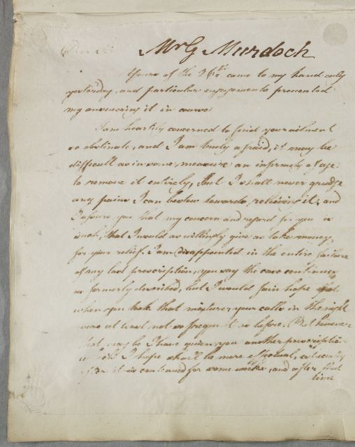 [ID:5603] From: Dr William Cullen (Professor Cullen) / To: Mr George Murdoch (Provost Murdoch) / Regarding: Mr George Murdoch (Provost Murdoch) (Patient) / 1 February 1788 / (Outgoing)
