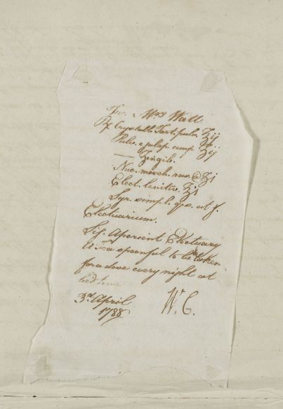 | Summary | Reply, 'For Mrs Watt'. It contains a recipe very similar to that given in Doc ID 5495 to the same patient. It may have been sent to her relatives, the Browns. |
