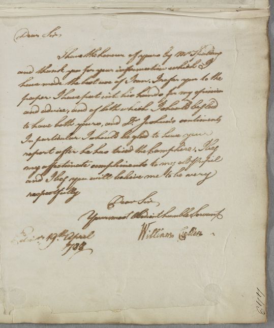 [ID:5630] From: Dr William Cullen (Professor Cullen) / To: Dr Richard Dixon (Dickson) / Regarding: Mr James Spalding (Spedding) (Patient) / 19 April 1788 / (Outgoing)