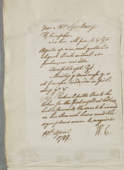 Letter concerning the case of Mr Spalding, containing recipes for Mr Spalding and his child, pp.433-4. May have been sent along with the previous document.