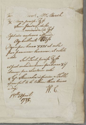 [ID:5631] From: Dr William Cullen (Professor Cullen) / To: [ADDRESSEE UNKNOWN] / Regarding: Reverend Marsh (Patient) / 18 April 1788 / (Outgoing)