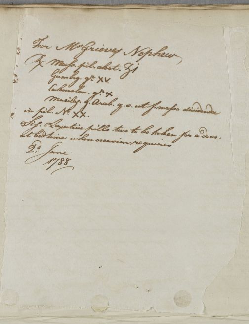 [ID:5662] From: Dr William Cullen (Professor Cullen) / To: [ADDRESSEE UNKNOWN] / Regarding: Mr Burnett Grieve (Patient) / 2 June 1788 / (Outgoing)