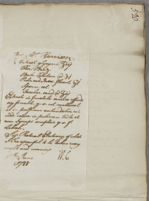 [ID:5669] From: Dr William Cullen (Professor Cullen) / To: [ADDRESSEE UNKNOWN] / Regarding: Mr Harrison (Patient) / 11 June 1788 / (Outgoing)
