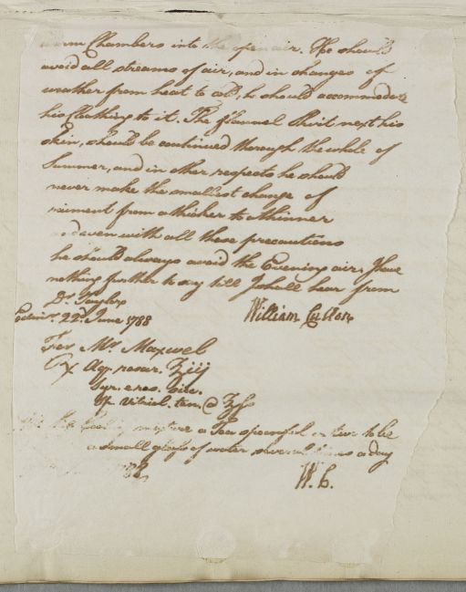 [ID:5676] From: Dr William Cullen (Professor Cullen) / To: Mr Charles Maxwell / Regarding: Mr Maxwell (Patient) / 22 June 1788 / (Outgoing)