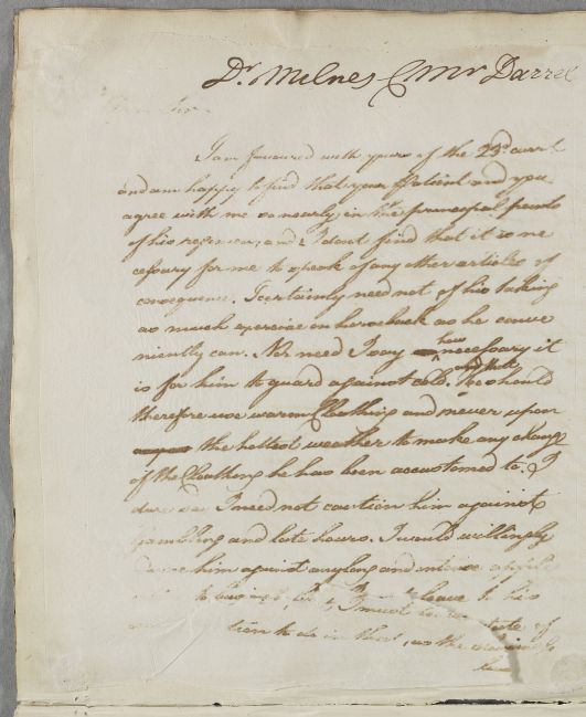 | Summary | Reply to Dr Milnes concerning the case of Mr Darrel. |