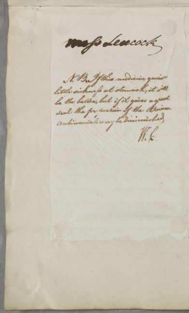 | Summary | Recipe and short letter concerning the case of Miss Leucock. |