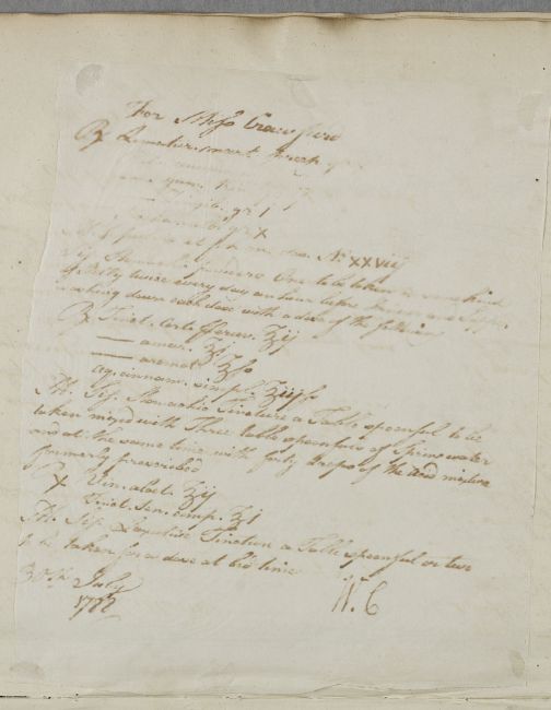 [ID:5688] From: Dr William Cullen (Professor Cullen) / To: Dr / Regarding: Miss Crawfurd (Patient) / 30 July 1788 / (Outgoing)